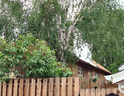 Yesterday we had two teams of workers, our usual carpenters inside and roofers outside, the latter tearing up the accumulated three layers of shingles and making quite the impressive racket and equally impressive mess all over the ground. Or rather, all over a large tarp they'd spread on the ground. And then, about half an hour before they were probably due to finish for the day, a sudden downpour forced them to scramble to make sure everything was watertight. They decided to put in some extra work today (a Saturday), and they finished about a third of the roof with new shingles (and cleaned up that mess as well).